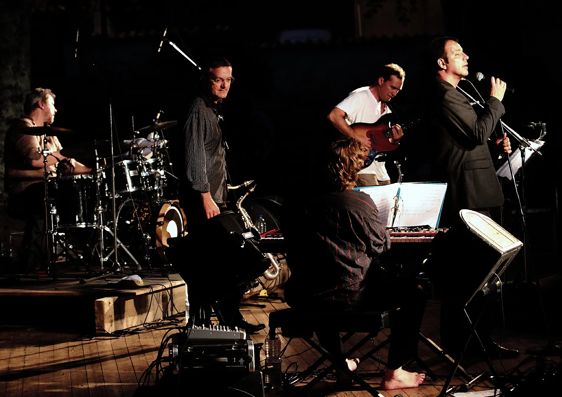 C’estentourédemusicienstalentueux,complicesdelonguedate, qu’ArnaudGuilleaconstituésonQuintetavec:Jean-YvesMonjauzeau piano,PascalFaidyauxsaxophonesetflûtestraversières,DavidCadiou à la contrebasse et Christophe Beausset à la batterie.AccompagnéparcetteformationArnaudproposeunrépertoireouvert interprétant,enlesréadaptant,aussibiendesstandardsquedestitres puisésdanslamusiquepop,lerhytm’n’blues,lerocketlachanson française.Avecsavoixde«crooner-bluesman»,ilreprenddesmorceauxde StevieWonder,ClaudeNougaro,RayCharles,TomJones,Serge Gainsbourg, des Rolling STones, des Blood Sweat & Tears. . .Portépardesarrangementsefficacesetlesimprovisations remarquables des instrumentistes.
